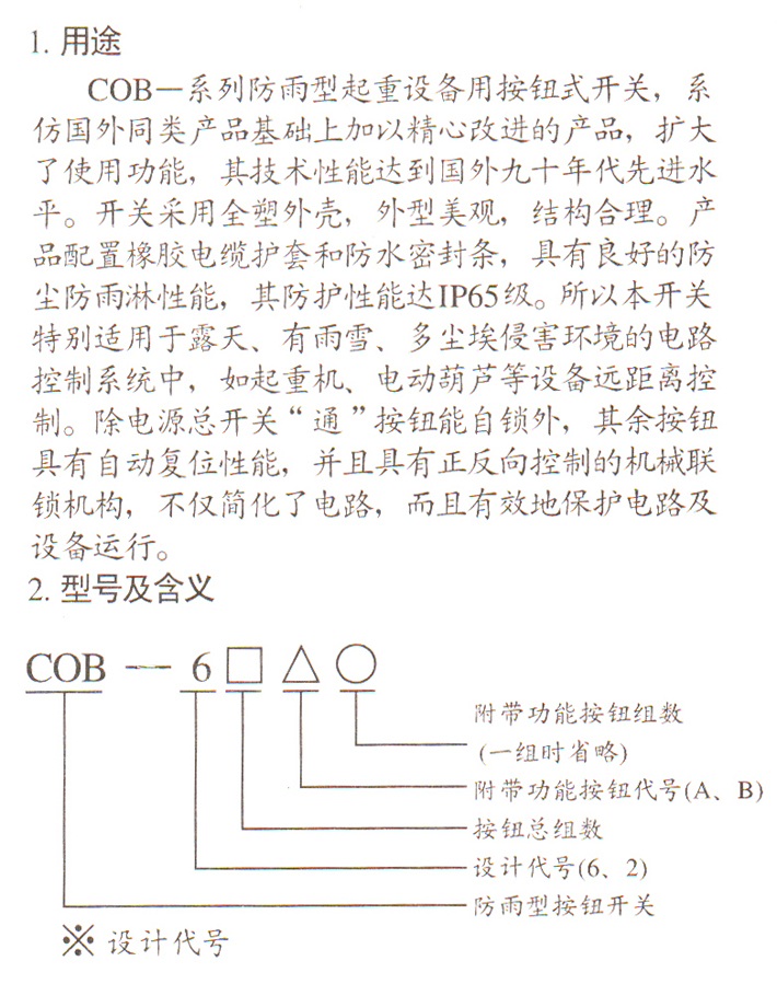 COB-7系列(防雨型)起重机用控制按钮